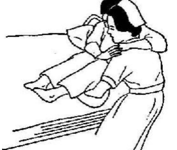 1、 一人搬运法(适用于患儿及病情许可,体重较轻者)